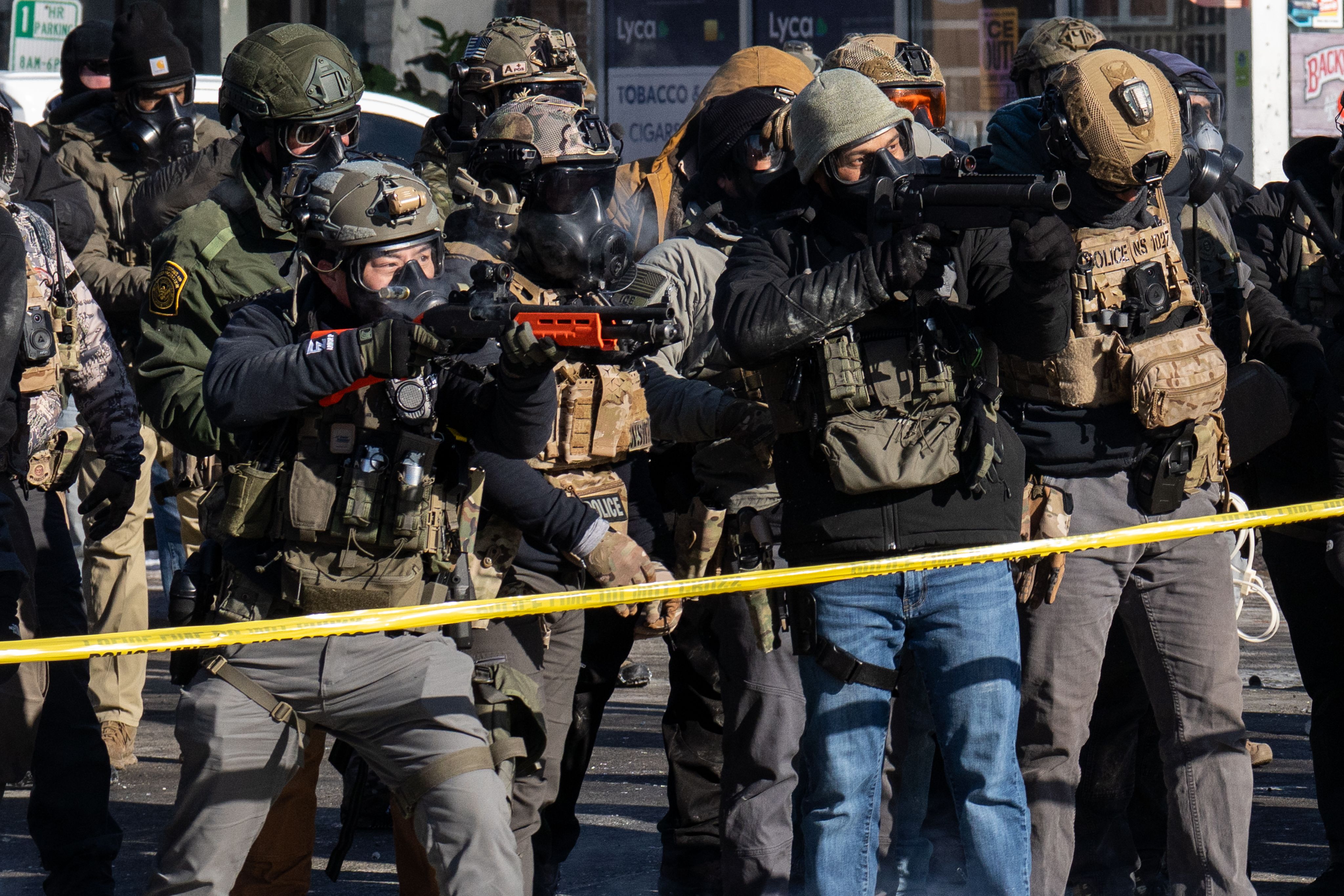 Agentes del ICE y de la Patrulla Fronteriza en la Avenida Nicollet el 24 de enero de 2026. Esto ocurre tras la muerte por disparos del residente de Minneapolis Alex Pretti. Pretti es la segunda persona asesinada y la tercera persona baleada por agentes federales en Minneapolis en un mes. Fotografía: Chad Davis.